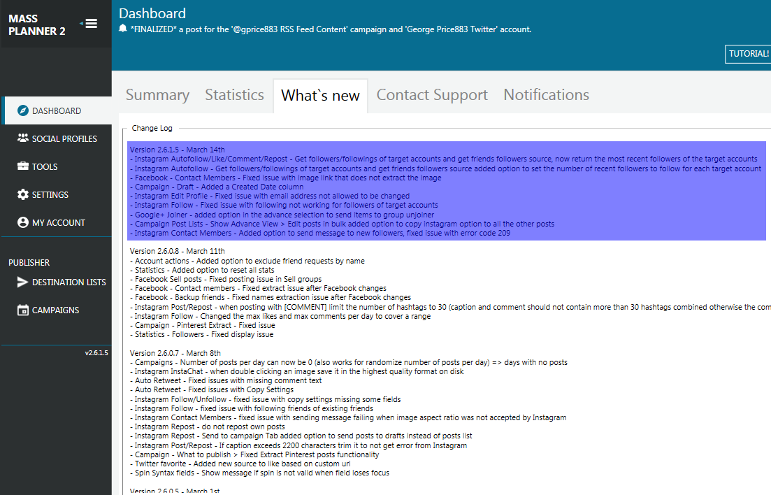 Mass Planner was updated to version 2.6.1.5 on March 14, 2016. This update includes;