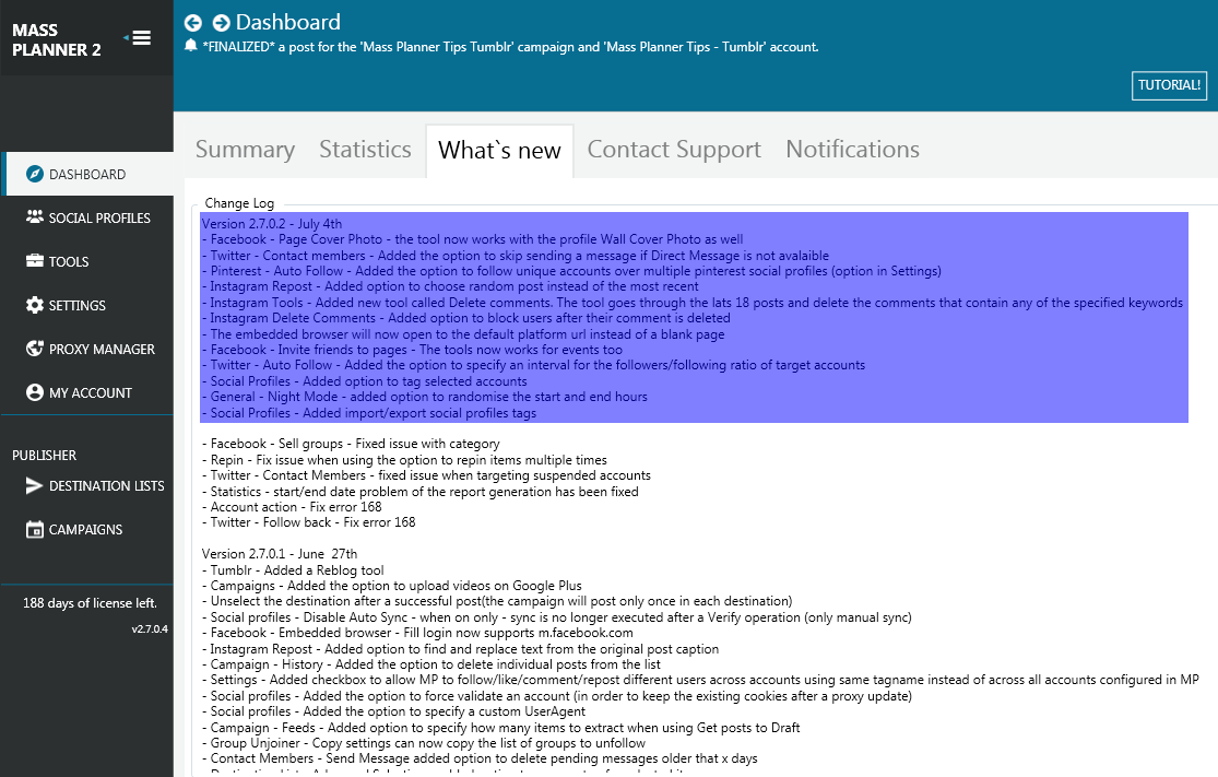 Mass Planner was updated to version 2.7.0.2 on July 4, 2016. This update includes;