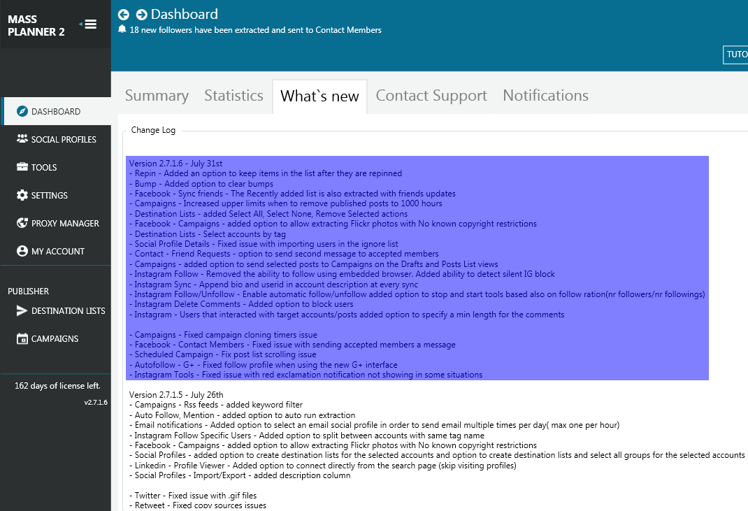 Mass Planner was updated to version 2.7.1.6 on July 31, 2016. This update includes;