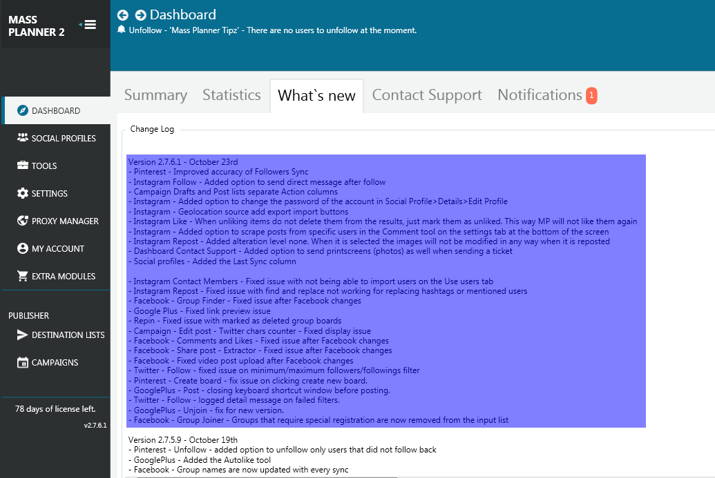 Mass Planner was updated to version 2.7.6.1 on October 23, 2016. This update includes;