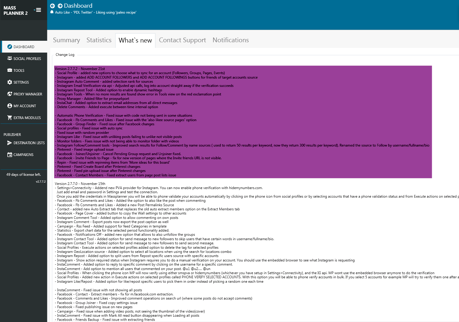 Mass Planner was updated to version 2.7.7.2 on November 21, 2016. This update includes;