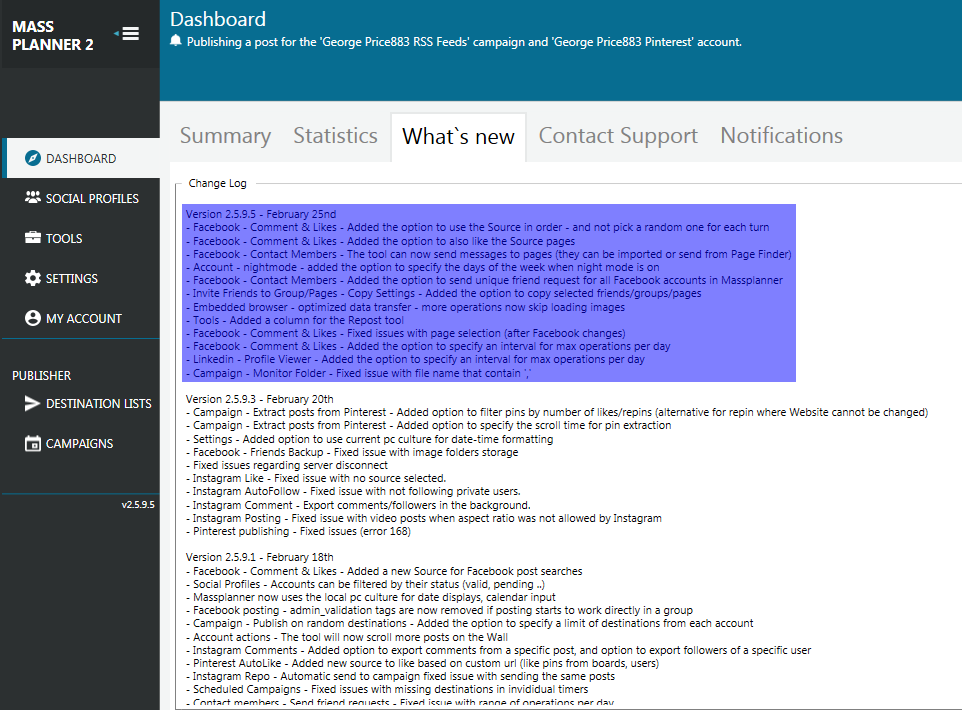 Mass Planner was updated to version 2.5.9.5 on February 25, 2016. This update includes;