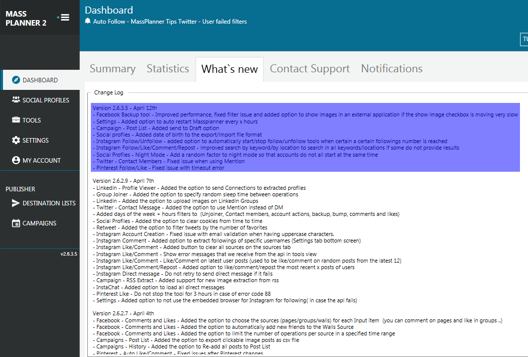 Mass Planner was updated to version 2.6.3.5 on April 12, 2016. This update includes;