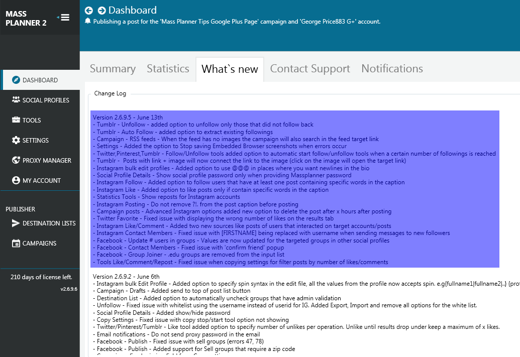 - Social Profile Details – Show Social Profile password only when providing Mass Planner password