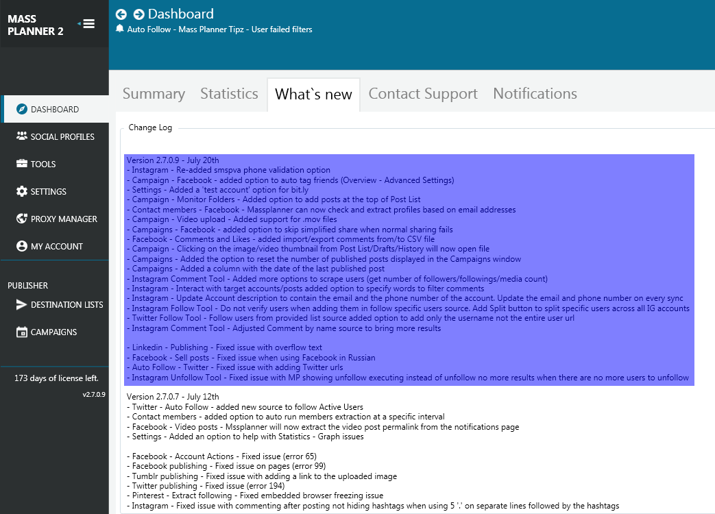 - Instagram Unfollow Tool – Fixed issue with Mass Planner showing unfollow executing instead of unfollow no more results when there are no more users to unfollow
