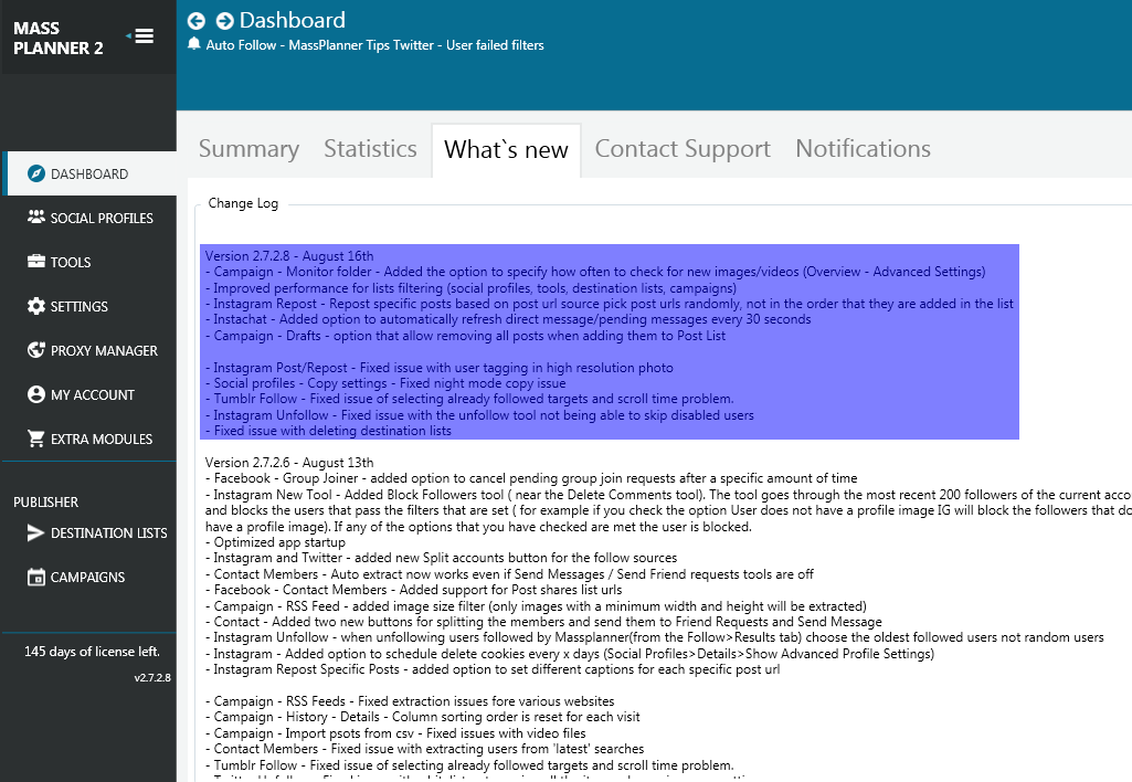 - Improved performance for lists filtering (social profiles, tools, destination lists, campaigns)