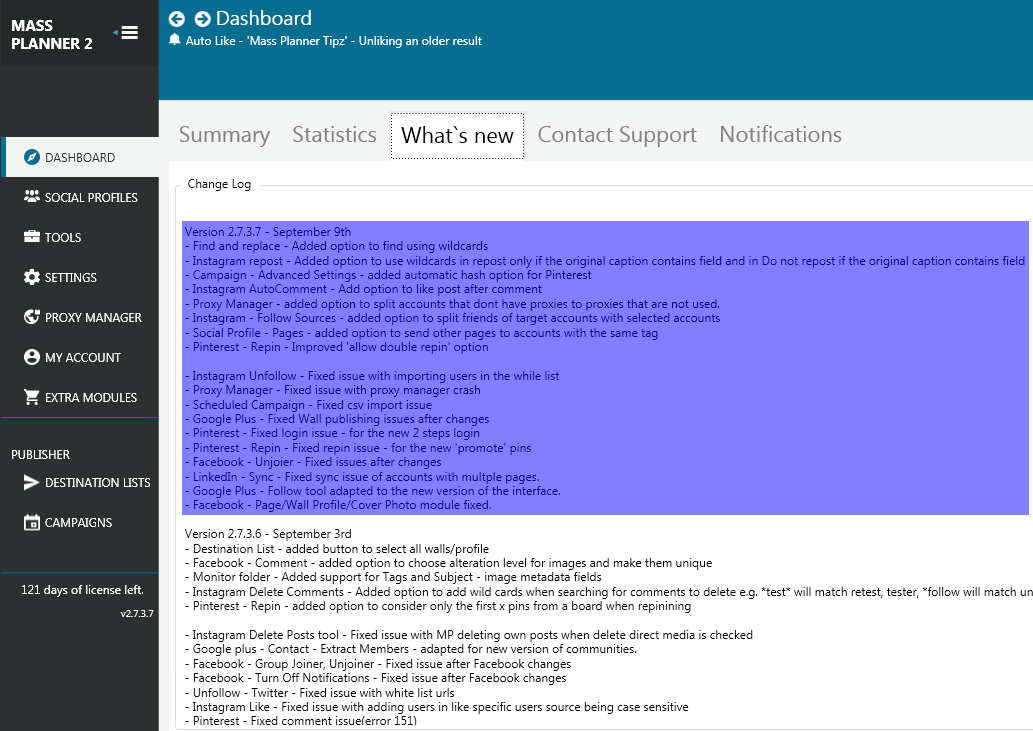Mass Planner was updated to version 2.7.3.7 on September 9, 2016. This update includes;