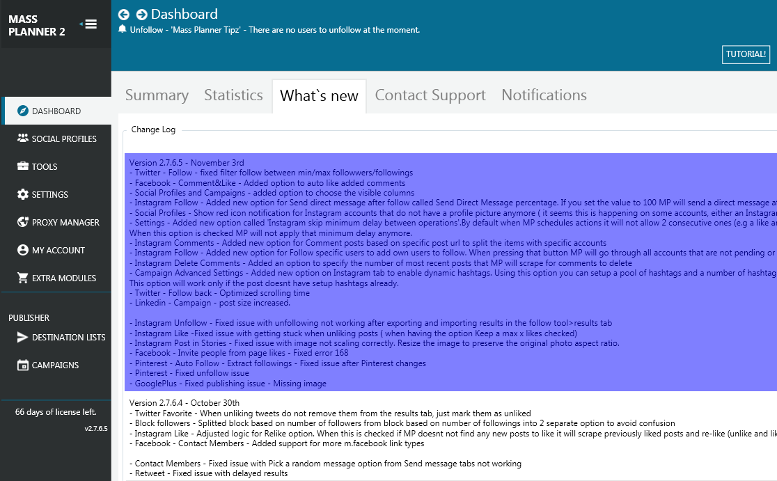 Mass Planner was updated to version 2.7.6.5 on November 3, 2016. This update includes;